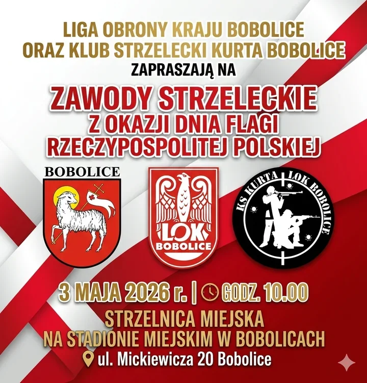 Na miejskiej strzelnicy w Bobolicach szykuje się dzień, w którym celność spotka się z patriotycznym symbolem. LOK Bobolice i Klub Strzelecki „KURTA” zapowiadają otwarte zawody, więc na osi pojawią się zarówno zawodnicy z doświadczeniem, jak i osoby, które chcą po prostu sprawdzić siebie. To ma być spotkanie sportu, koncentracji i majowej uroczystości w jednym.