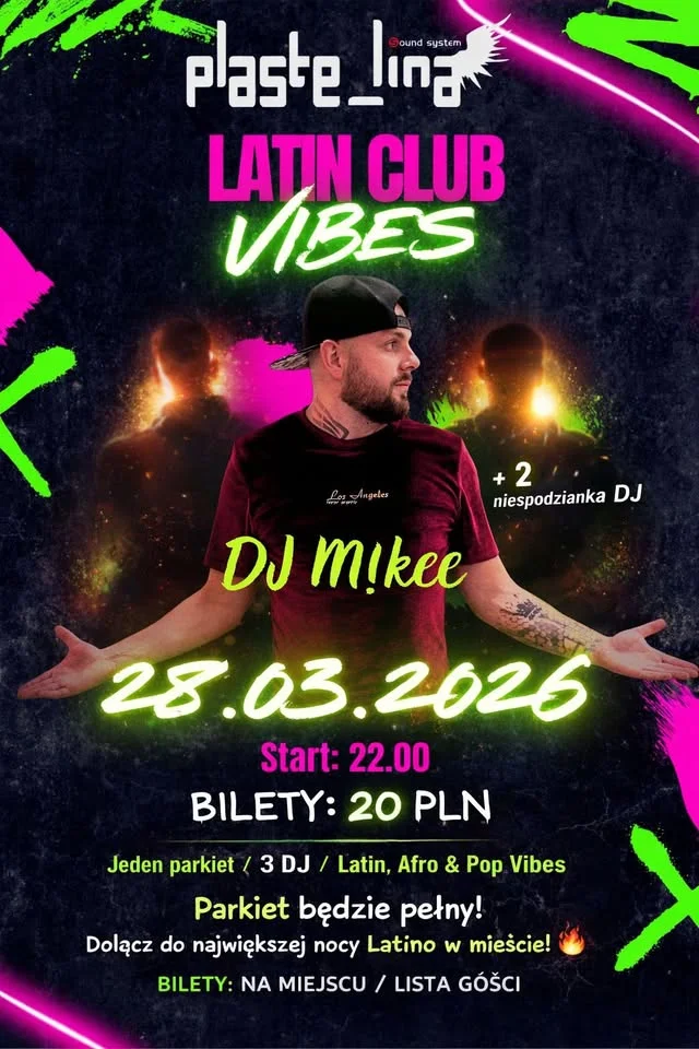 Rozkręca się najbardziej gorąca impreza tej wiosny — parkiet w Paste_lina Sound System zamieni się w prawdziwe Latin Club Vibes. Muzyka od DJ Mikee i dwóch gości-niespodzianek, trzy różne sety i gwarantowana energia na parkiecie — warto zajrzeć i poczuć ten klimat!