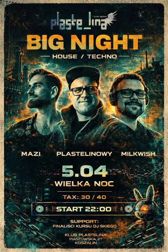 To impreza ze świątecznym pazurem: mocne basy, house i techno, taneczna energia i parkiet pełen ludzi. Idealne dla tych, którzy chcą spędzić Wielką Noc inaczej niż przy stole — z muzyką, ruchem i dobrą atmosferą.